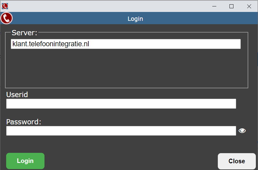 Userid / Password: de gebruikersnaam en wachtwoord waarmee u op Phone inlogt.